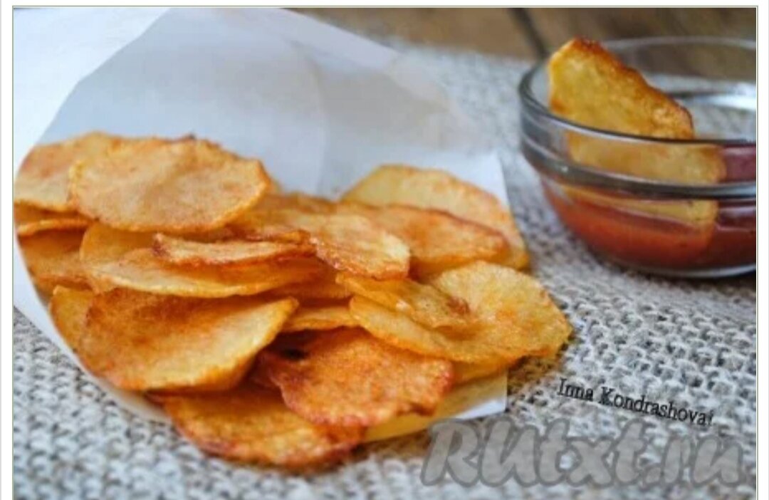Если вы любите чипсы, но редко их едите, потому что они не полезные, тогда этот рецепт должен вам пригодиться. Сегодня я хочу рассказать, как приготовить картофельные чипсы в духовке. Они получаются вкусными, хрустящими и совершенно не вредными для здоровья. Специи можно выбирать на свой вкус и делать чипсы пряными, острыми или просто солёными. Попробуйте приготовить картофельные чипсы в духовке, думаю, вам понравится. Ингредиенты Для приготовления картофельных чипсов в духовке потребуется: картофель - 300 г; соль - щепотка; сладкая молотая паприка - по вкусу; растительное масло - 2 ст. л. Процесс приготовления Подготовить необходимый набор ингредиентов. Картофель очистить, вымыть и нарезать очень тонкими слайсами (кружочками) толщиной около 2 мм. Нарезанный картофель выложить в миску и залить на 2-3 минуты холодной водой. Это нужно для того, чтобы вымыть лишний крахмал. Воду слить, а картофель выложить на вафельное полотенце, просушить. Картофельные слайсы выложить в миску, доб