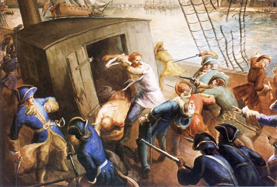 Ничего не подозревавшие стрельцы поднялись на борт для досмотра якобы торгового голландского корабля и были перебиты коварными шведами. Кроме того, скандинавы захватили поморский баркас Ивана Рябова, который вышел в море на промысел морского зверя.