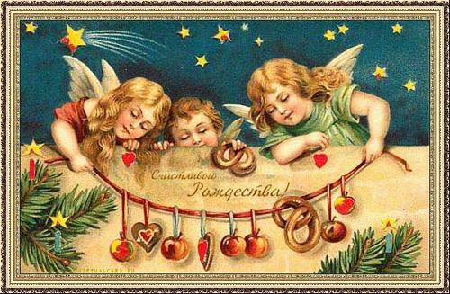 Культурные традиции христианского мира глубоко проникли и в малые формы. Так, открытки стали неизменной частью Рождества и Нового года, как и ангелочки, изображенные на них. Винтажные открытки представляют ангелов в виде детей, которые не против полакомиться вкусным угощением, которое готовится специально для рождественского пира. Иногда ангелы ведут людей к храму, освещая путь украшенными елочными веточками свечами. Они готовятся к празднику, совсем как люди. И это создает впечатление приобщённости к чему-то большему, чем просто выбор красивой елочки и маленьких свечек для нее. А порой они резвятся, как дети, оставленные на минутку родителями. Ангелы могут быть и музыкантами. Но как бы они ни изображались, от старых открыток веет волшебством и уютом. Святая ночь дарит надежду всякому, а ангелы на открытках лишь подтверждают, что они всегда рядом, чтобы поддержать и успокоить. А Российской империи были популярны немецкие и английские открытки, поэтому они тоже включены в нашу подборку