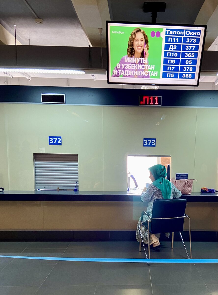 Ожидали в очереди мы, от силы минут 5. Затем нас вызвали в окошко №373. Сотрудница "сервиса" по фамилии Афонина, не разобравшись в ситуации, сразу начала общаться на повышенных тонах. Заявила, что у окна должен быть один человек (где это написано и чем регламентировано, непонятно, как и ограничение граждан в обращении за помощью к юристам). Начала кричать, что если я представитель, то должна записываться отдельно. В чем разница, кому оказывать платные услуги по составлению заявления и предварительной записи на прием документов непосредственно в УВМ ГУ МВД России, я так и не поняла. Ведь на прием документов иностранный гражданин приходит лично!