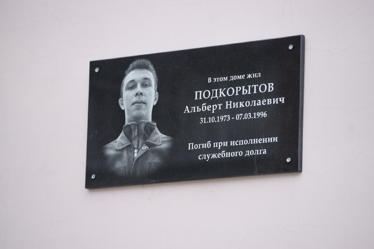 В доме по адресу Красноармейская 44 жил Альберт Николаевич Подкорытов. Табличка установлена в память о сысертчанине, который погиб при исполнении воинского долга во время локальных конфликтов. Это уже четвёртая памятная табличка, размещённая на фасадах домов в Сысерти. Ранее их установили в память об воине-интернациолисте Андрее Прохорове, краеведе Викторе Колегове и заслуженном враче Анатолии Котельникове.
