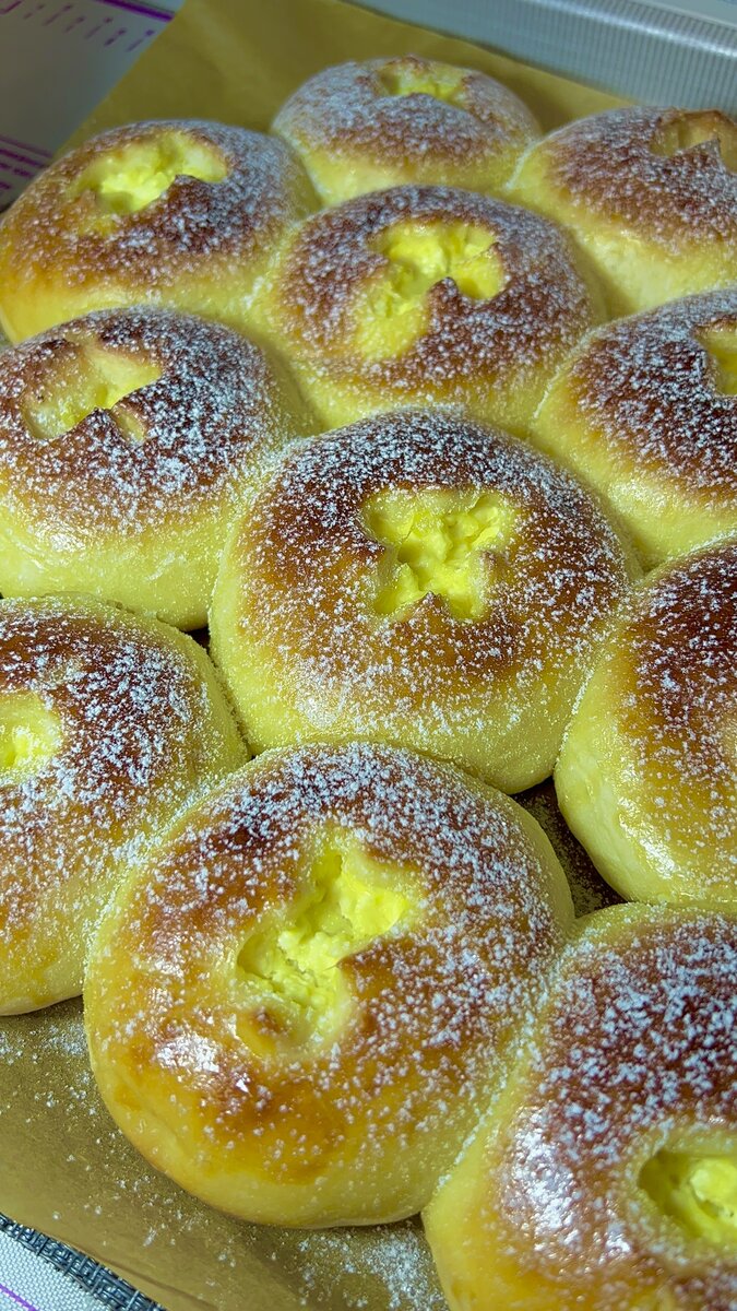 Молоко (тёплое) - 2 стакана (500 мл) Вода (тёплая) - 1 стакан (250 мл) Сахар - 5 ст. л с горкой Мука - 6 столовых ложек Дрожжи - 1 пакетик (10г) Соль - 1 чайная ложка Растительное масло - 200мл Мука - 6-7 стаканов Начинка: Творог 400 г Яйца 2 шт Соль по вкусу Для смазывания: 1 желток 1 ст.л. молока СТАКАН 250 мл Соединили 2 стакана молока, 1 стакан воды. Добавляем туда сахар, муку (толко 6 ст.л.), дрожжи. Перемешиваем, накрываем полотенцем и убираем в теплое место на 15 мин. После чего, добавляем растительное масло и соль. Теперь постепенно просеиваем муку, каждый раз хорошо размешивая тесто. В конце тесто вымешиваем руками в течение 5 минут. Вот и готово тесто к лепке ватрушек! Делаем начинку смешав ингредиенты. Тесто делим на равные части, каждый кусочек размером чуть меньше теннисного мячика. Из кусочков формируем шарики. Затем берём шарик тесто с помощью пальцев растягиваем в лепёшку. В середину кладём одну столовую ложку начинки и защипываем по центру. Заготовки вы