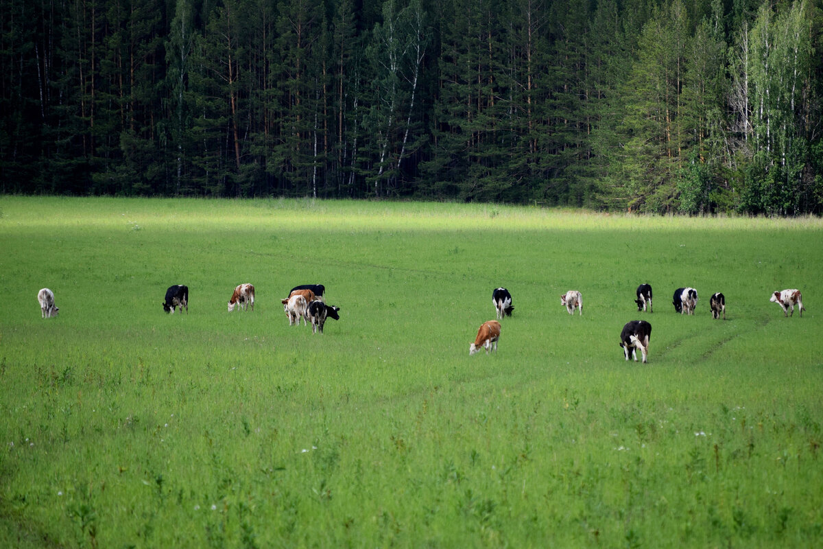 По пути в село Кадниково смогли поймать в объектив камеры коров, живописно пасущихся в поле. Сможете сосчитать, сколько бурёнок на этом фото?
