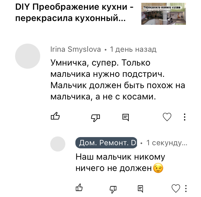 Напомню, что мой блог посвящен переделкам, ремонту и разным DIY. Я не рассказываю о том, как воспитывать детей или строить семейные отношения. Но почему-то частенько людей волнуют длинные волосы моего сына и где же всё-таки мой муж.
