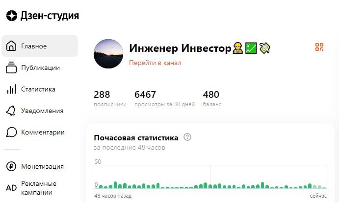 Приветствую Вас в моем блоге! Данный блог я начал вести 4 апреля 2022 года. За 3 месяца на канал подписалось 288 человек. Это достаточно много, так как изначально цель была просто в онлайн фиксации своих инвестиций с публичным доступом. Интересно было услышать мнение других частных инвесторов на свои действия на фондовом рынке. Ни о какой монетизации я не думал, но потом решил, а почему бы и нет, ведь этот доход будет хоть немного приближать меня к цели выйти на стабильный денежный поток от инвестирования. Таким образом, 29 мая 2022 года я подключил монетизацию данного канала. Спасибо всем, кто подписан на мой канал, читает и комментирует статьи. Это мотивирует и вдохновляет, не позволяет забросить блог даже на непродолжительное время. Как видно из скрина кабинета Дзен-студии, на 06.07.2022 года на балансе 480 рублей, которые заработаны за период с 29.05.2022 по 05.07.2022 года. Сегодня «зарплата» еще не начислена. Пока писал статью пришло начисление за сегодняшний день в размере 11,4