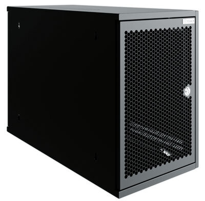 Хорошие отзывы получили 19-дюймовые шкафы Lite высотой от 6 до 18 U, с несъемными стенками и дверью со стеклом. Глубина шкафа – 350–600 мм, распределенная нагрузка – 40 кг. У этих шкафов разборная конструкция – в нее входят 4 вертикальные 19-дюймовые направляющие. Передние направляющие регулируются по глубине, задние представляют собой часть корпуса. Шкаф имеет пассивное охлаждение – в крыше и днище определены специальные места для установки вентиляторных модулей. Покрытие порошковое, цвет серый (RAL 7035) или черный (RAL 9005).
