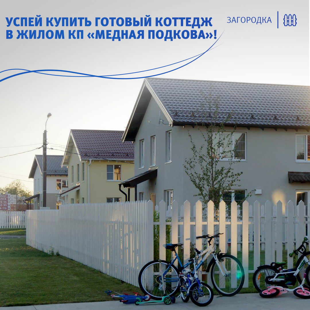 Управление загородной недвижимости ИНКОМ-Недвижимость информирует, что в наличии в жилом в коттеджном поселке «Медная подкова» осталось всего восемь домов. В КП «Медная подкова» покупатели загородной недвижимости могут приобрести готовые дома (площадью от 148 кв. м до 157 кв. м) с участками (от 5,2 соток до 8,4 соток). Пока есть возможность выбрать из предложенных проектов то, что нужно только вам! Например, размер и вид террасы, либо входной группы — как крыльцо или как закрытое помещение. Отделка в домах тоже на выбор: черновая, white box, под ключ. Минимальная стоимость коттеджа — 15,3 млн рублей. Все дома в посёлке «Медная подкова» подключены к центральным коммуникациям, в том числе к газоснабжению. На территории коттеджного посёлка установлены детские и спортивные площадки, есть зона отдыха с выходом к реке.