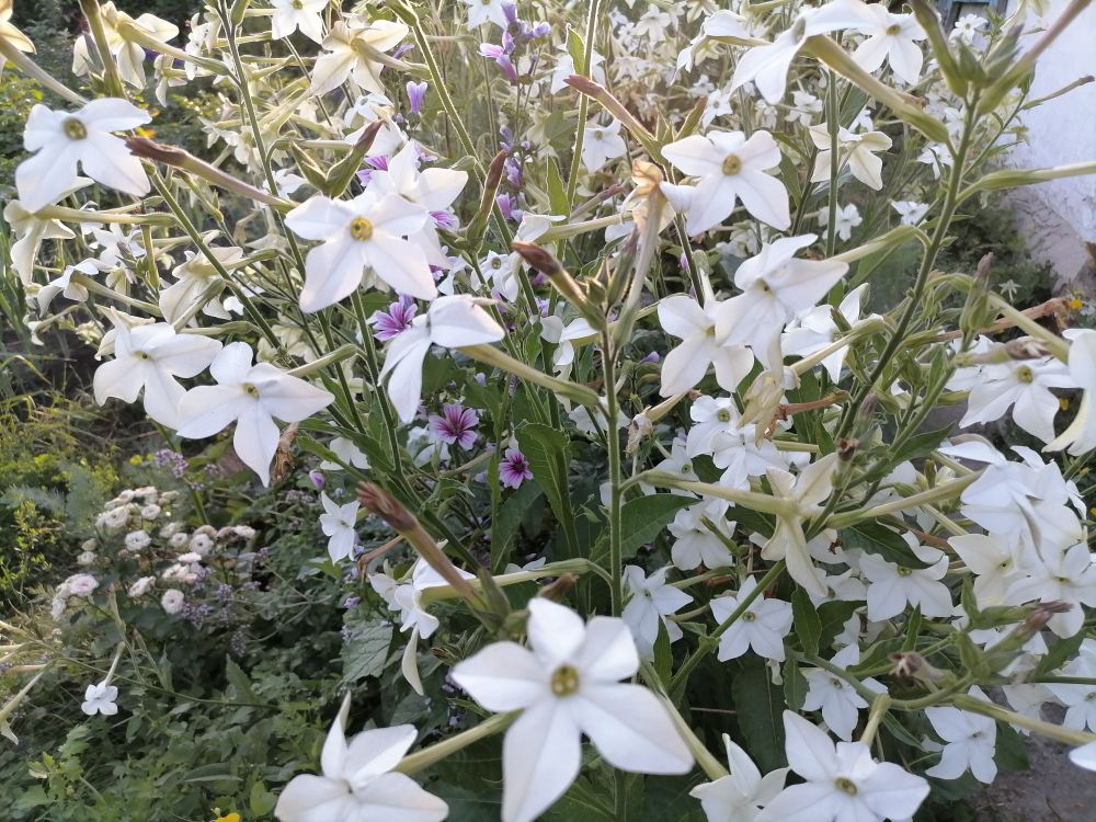 Мое первое знакомство с душистым табаком состоялось лет 20 назад, в молодости. Тогда он рос на участке стеной, аромат был на всю округу. Но повторять не стала - цветы выглядели невзрачно, кусты росли высоким и заваливался. И вот в прошлом году я созрела. Наверное, научилась подвязывать цветы и размещать их по линиям: какие-то на задний план, какие-то - на парадное место. В 2021-м купила сорт Лесная сказка. Вырос выше метра, стоял солдатиком, только ближе к осени начал заваливаться. Запах появился, когда кусты хорошо разрослись. Нынче мой опыт с душистым табаком еще удачнее. Душистый табак, выращивание Осмелела, купила аж 4 сорта разных цветов, некоторых по 5 семян в пакете. На рассаду посеяла в середине апреля. Это теплолюбивый цветок, заморозков не выносит, поэтому горшочки держала дома. Густые всходы прореживала, не рассаживала, мне много не надо - каждого сорта по 5-6 кустов даже много. В мае вынесла в парник. В грунт высадила в начале июня. Но и тогда были заморозки. Закрывала пере