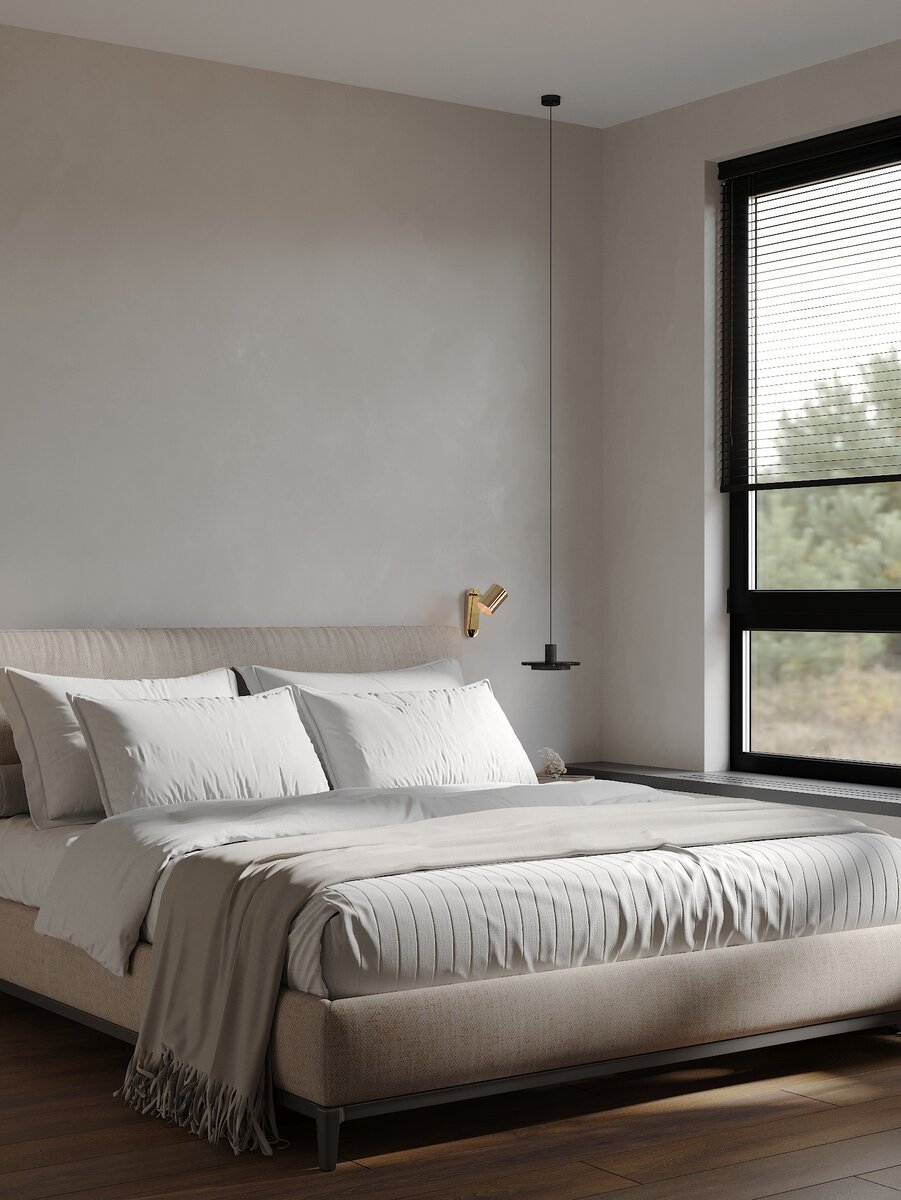 Ссылки на предыдущие статьи по этому проекту: Как я уже упоминала, заказчику нравится все строгое, монохромное, графичное. Увидев визуализацию в первый раз, сказал, что не ожидал, что будет вот так красиво 😄 Это для меня всегда очень приятно. Поймать нужную волну и сонастроиться. Единственный спорный момент у нас - жалюзи. Вроде уговорила, но есть ещё затаившееся желание у заказчика, если что, повесить шторы 😬 Я, в таком интерьере, считаю жалюзи самым правильным решением. При необходимости они закроют от солнца, но при этом подчеркнут важный элемент интерьера - чёрные окна с каменным подоконником. Они выглядят современно, даже урбанистично. Декор подбирала простой, но лаконичный. Связаться со мной: