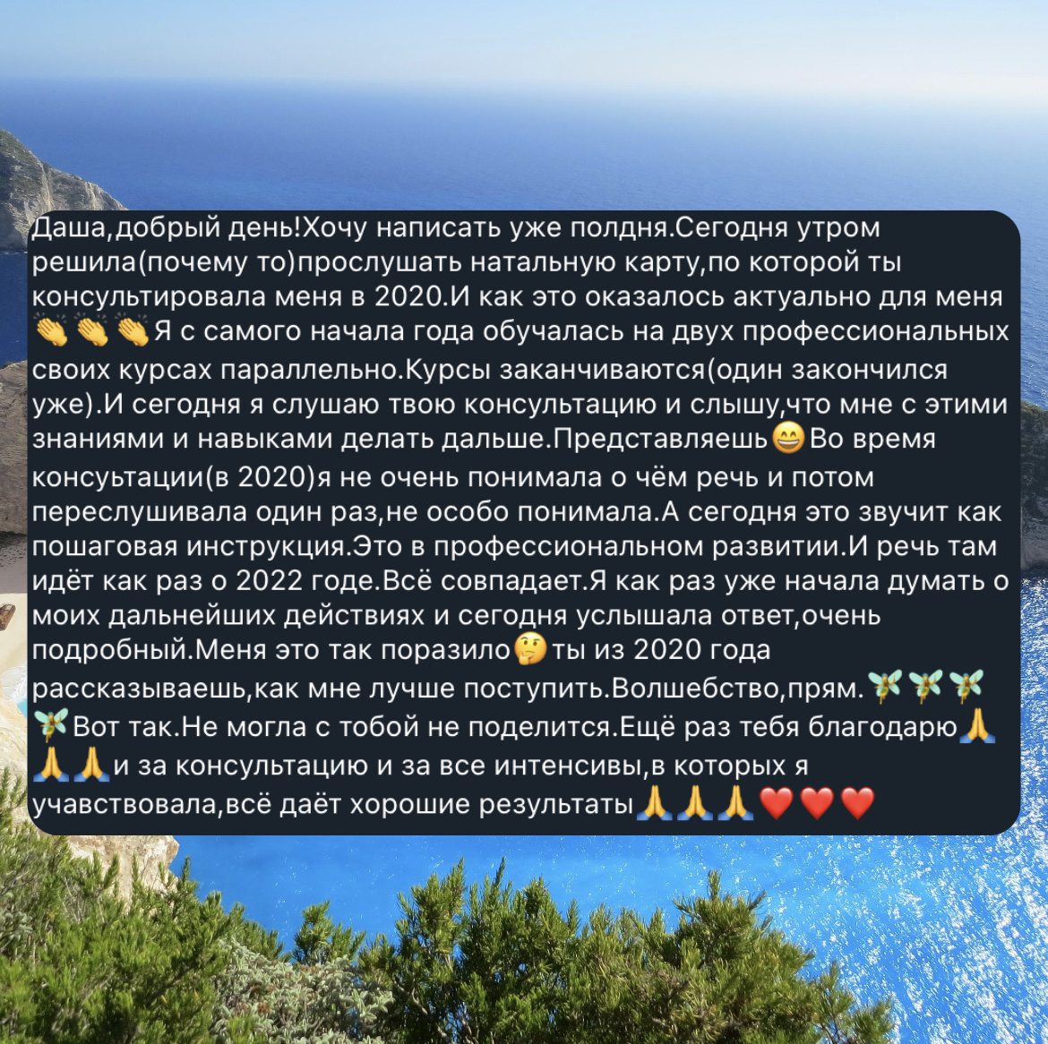 Пока мы не войдем в нужное время и нужно место, часто мы просто способны осознать всей величины актуальности информации, которую предоставляет нам качественное астрологическое чтение. Я всегда говорю ученикам, что гороскопы нужно переслушивать далеко не один раз. Проходит время и то, что мы не слышали, становится таким очевидным и важным! И в этом я вижу силу астрологии. И поэтому рекомендую каждому сделать базовые чтения по всем сферам. Это один из самых ценных вкладов в себя. Будьте в потоке! С заботой, ваша Дарья Vidvas #дарьяvidvas_отзывы #астрологияновоговремениvidvas #предназначение_vidvas #дарьяvidvas #предназначение_vidvas