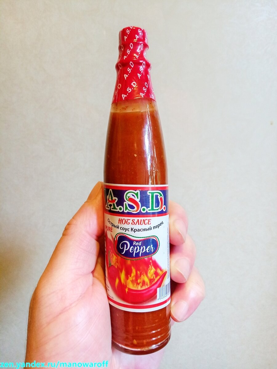 Будьте осторожны, соус жидкий. Состав простейший: Интересно, какой именно перец использовали при приготовлении этого соуса? Одно дело, если там что-то типа Халапеньо, и совсем другое дело, если Pepper X. И весьма напрягает такое количество уксуса. Соус действительно жидкий. Если бы не узкое горлышко бутылочки, то можно было