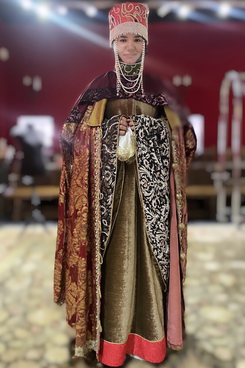 По мимо того, что мне довелось разглядеть роскошные наряды цариц и жён знатных людей, мне ещё и удалось примерить самый настоящий наряд царицы! Недавно посетила Коломенское, об этом месте, своих ощущениях, эмоциях и впечатлениях напишу пожалуй отдельную статью. Сегодня мне хочется рассказать о том, как одевалась русская царица 17 века, ведь мне удалось померить каждый слой наряда! Итак , первый слой - длинная рубашка в пол из тонкого льна. Такая рубашка служила так скажем «нижним бельём» девушек. Второй слой - «рубаха с рукавами десять локтей». Рубаха напоминающая в нашем современном мире одежду для пациентов психиатрической больницы ))) на самом деле такие рукава собирались и создавали некую многослойность, что выглядело, безусловно очень интересно! Третим слоем идёт красная рубашка - у такой рубашки тоже были длинные рукава , но их не одевали. Объясню: для того чтобы показать, что у женщины есть богатый муж, что она не делает тяжёлую работу по дому, а занимается своими хобби,