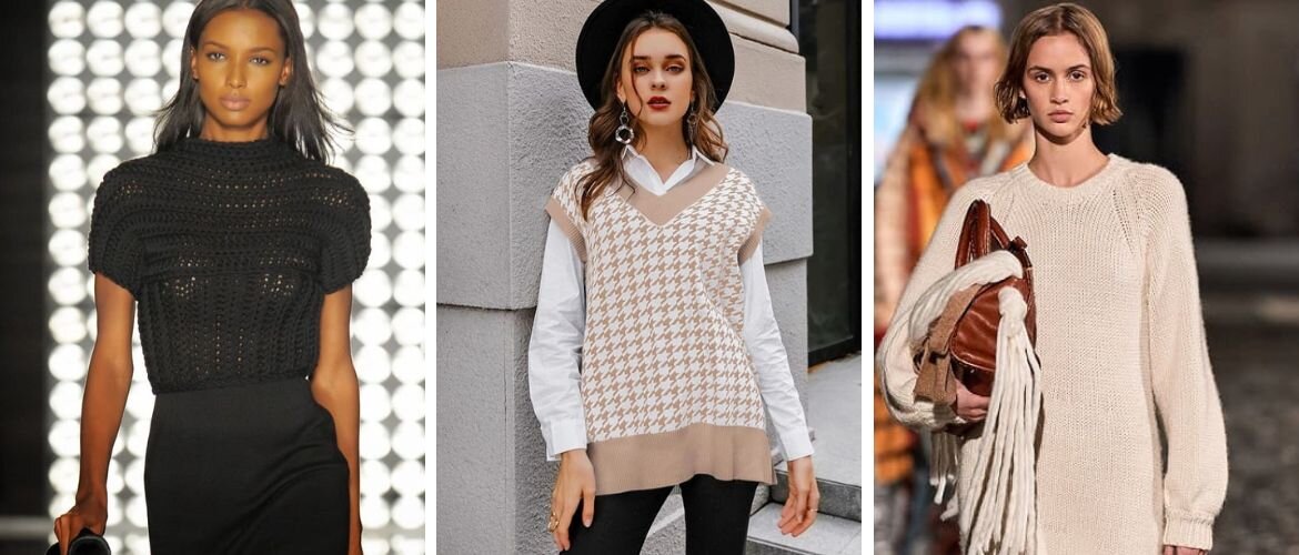 Вязаная одежда, кажется, была модной всегда. И ее можно носить не только в холодную пору года. Так, платья в технике кроше прекрасно подходят для лета. А ажурные топы становятся хитами в каждом сезоне. Какие же вязаные вещи будут модными всегда? Ажурный топ Он привлекает внимание и отлично подходит для модного образа в жаркую погоду. Легкий вязаный топ можно сочетать с джинсами, брюками, юбками или шортами. А осенью его можно надеть под пиджак или курточку. Жилетка Вязаная жилетка будет отличным дополнением к модному деловому стилю или яркому стристайл луку. Обратите внимание на короткие жилеты, которые можно надеть на водолазки, а также разноцветные модели с принтами или жилеты оверсайз. Вы легко подберете вариант как на деловую встречу, так и свидание. Свитер Вязаный свитер точно никогда не выйдет из моды. Меняются только фасоны. Сегодня в моде модели оверсайз, которые, кажется, больше на несколько размеров. А еще стильно выглядят свитера с объемными узорами, что прекрасно дополнят в