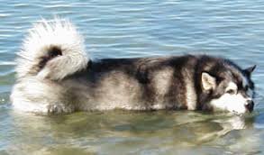 Я не знаю, у кого как, основываюсь только на своих личных наблюдениях Так вот, если кто не знает, аляскинский маламут - это самая большая и мощная из северных ездовых собак. В принципе, маламут очень похож на популярных хаски, только значительно крупнее и без гетерохромии глаз (у хаски часто глаза разного цвета). Отличная собака, крупная, но при этом не тяжелая и подвижная. Отвечая а поставленый самому себе вопрос - отлично плавает маламут. Особенно любит даже не плавать, а побродить по брюхо в воде. При этом жёсткая шесть маламута имеет такую особенность, что собака вылезает из воды, отряхивается и оказывается практически сухой. Не промокает она, как какой-нибудь гусь. Но есть один нюанс. Главное богатство маламута - это богатый поднятый вверх хвост. Этакий плюмаж или опахало. Когда собака плывет, хвост гордо развевается, как парус. Наш маламут Тася (Тайга по-настоящему) плавать любила, но плавала только до тех пор, пока хвост развевался над водой. Как только хвост намокал и она не м