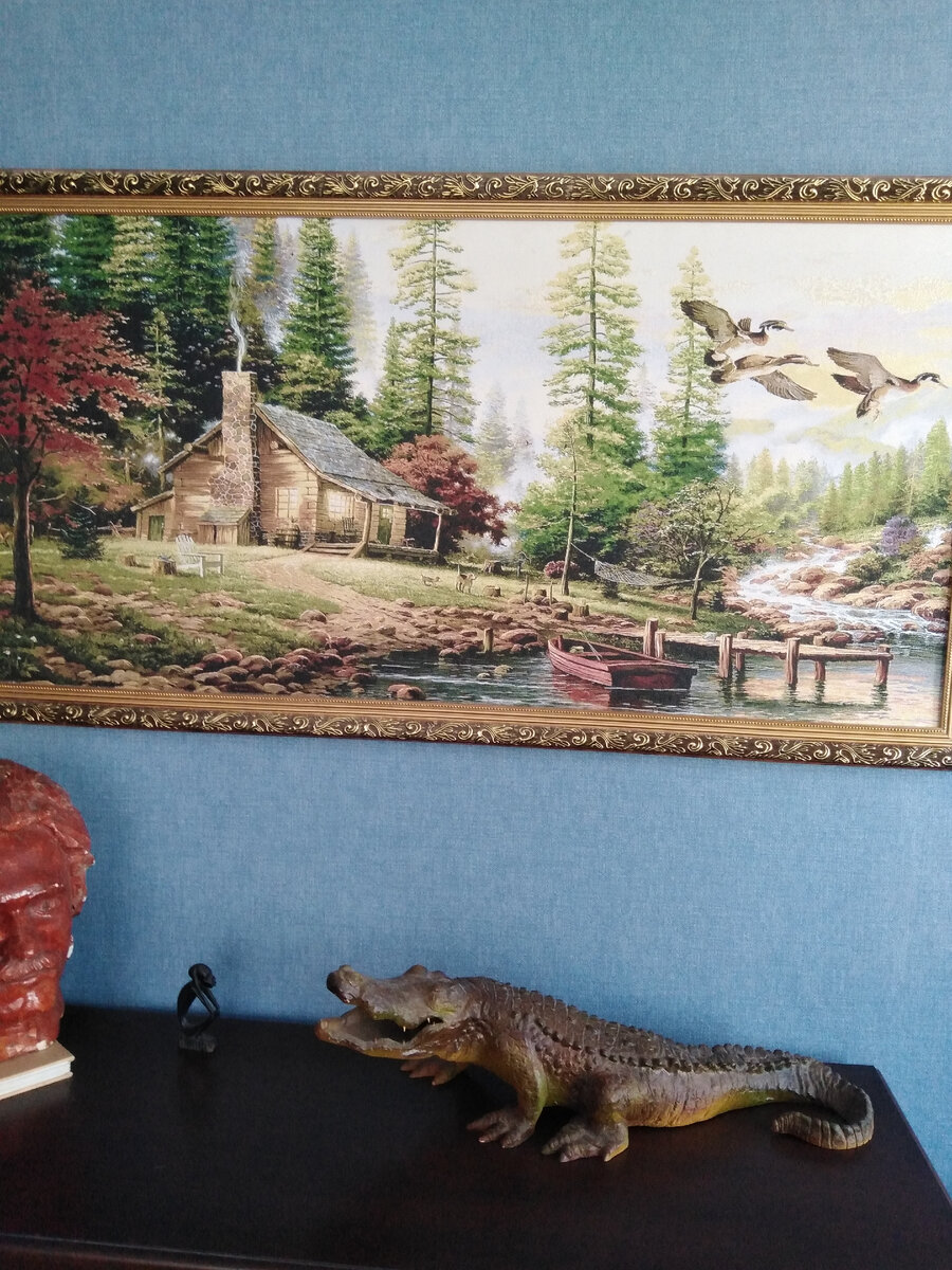 С вашего позволения, друзья, попробую продолжить рассказ о возникновении одной песенки с названием "Секрет". Для эффекта полного проникновения в предмет опыта, прошу вас всмотреться в эту картину, появившуюся у меня на стене над кроватью лет 8 назад. О чем она... А вот о чем.. Когда то, в юности, моей страстью, моим увлечением стало изобразительное искусство, это и живопись и рисунок, и резьба с выжиганием по дереву, и даже скульптура- работа пальцами с самым что ни есть природным материалом - глиной. А такого рода творчество требует внимательного исследования каждого штриха, линии, каждого изгиба и точности воспроизведения создаваемого образа. Появилась привычка всматриваться в увиденное, я б даже сказал- "проникать" в предмет, как бы входить в картинку из реальной жизни в мир - иллюзию изображения художника. Эта картина, висящая на моей стене, написанная малоизвестным художником и стала когда то невольным объектом моего проникновения в как тогда казалось, сказку, невинным пейзаже