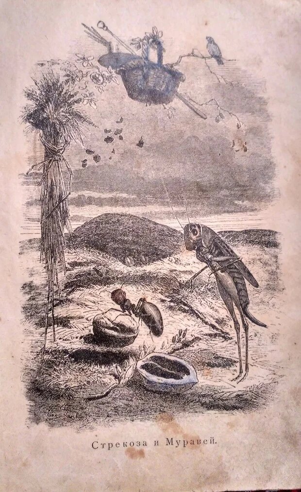 С времен Луначарского - наркома образования, мы все знаем басню Крылова "Стрекоза и муравей" в его переделке басни Ла Фонтена "Муравьиха и цикада".