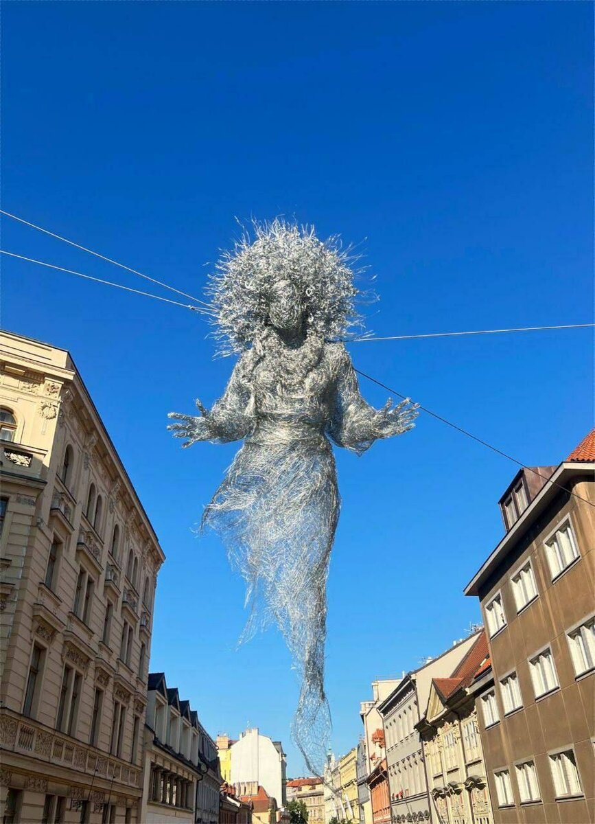 Так представляет себе "украинскую мать" чешская художница Вероника Псоткова. Комментаторы в соцсетях не оценили произведение "искусства", назвав его "Медузой Горгоной" и "жутким приведением", которое теперь пугает прохожих. Это уже вторая "украинская мать", предыдущая пугала жителей Софии.
