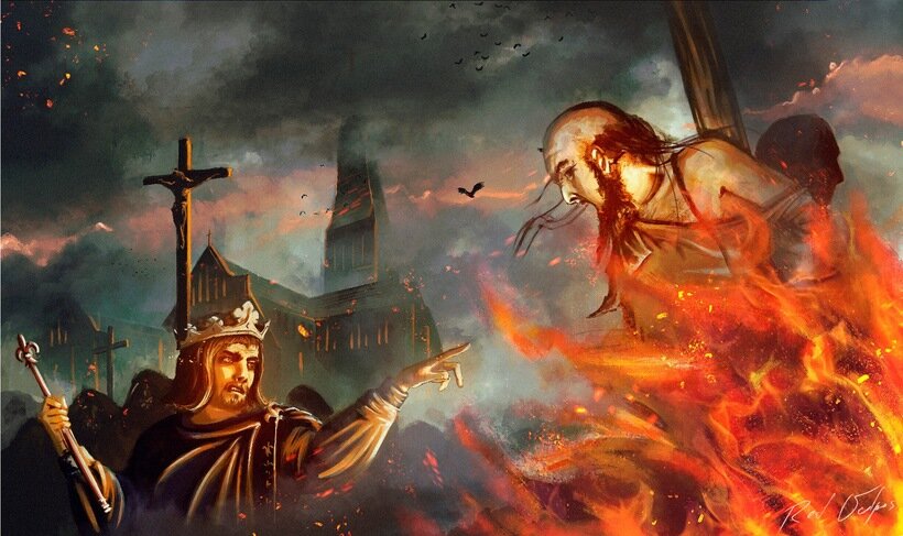 Читавшие "Игру престолов" восхищаются масштабами событий, интригами, битвами, коварными далеко идущими замыслами и многим другим. Но не стоит забывать, что в истории нашей Земли были события и поинтереснее. Профессиональный историк и журналист Морис Дрюон вызвался показать миру историю средневековой Франции. Какой вам представляется Франция? Какой образ строит ваша фантазия? Наверняка это круассан, бокал вина и прогулки по культурным местам Парижа. Я прав? Но Франция XIII века совершенно иная. Это грязь, богатство и нищета, фанатизм и алчность Церкви, жажда власти королей, боль, кровь, измены и смерть. Всё это вы найдёте в цикле "Проклятые короли". Несколько любопытных фактов: 1. Завязкой сюжета служит проклятие магистра ордена Тамплиеров Жака де Молэ в адрес короля Франции Филиппа "Красивого". 2. Действие романов охватывает без малого полвека истории Англии и Франции. 3. Англичане и французы были мастерами по придумыванию прозвищ. Те могли подчёркивать определённые особенности человек