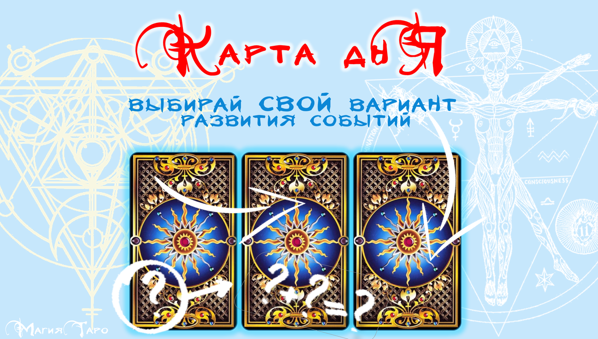 Про марафон "Карта Дня" читаем в этой статье. Перед Вами три карты, выбранные случайно с помощью генератора изображений. Подумаете о предстоящем дне: Что Вам необходимо сделать? Чего опасаться в дне грядущем? Как вести себя в коллективе или паре? Задайте свой вопрос о будущем и выберите ОДНУ КАРТУ Если Ваша карта ПЕРВАЯ Если Ваша карта ВТОРАЯ Если Ваша карта ТРЕТЬЯ Остались вопросы в толковании Аркана? Пишите в комментариях - помогу разобраться. Если вы захотите меня поблагодарить за мою работу, если прогноз Вам действительно пригодился и подсказал, как выйти победителем, как узнать "прикуп" и где "стелить соломку" - можете перевести небольшую сумму: Страница прогнозов #карта дня магия таро