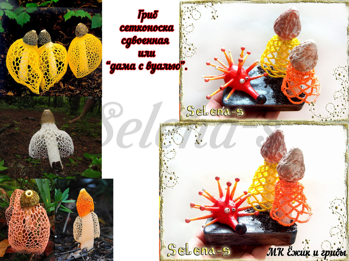 МК Ёжик и грибы "Дама с вуалью", лепка. Часть 2. Грибочки