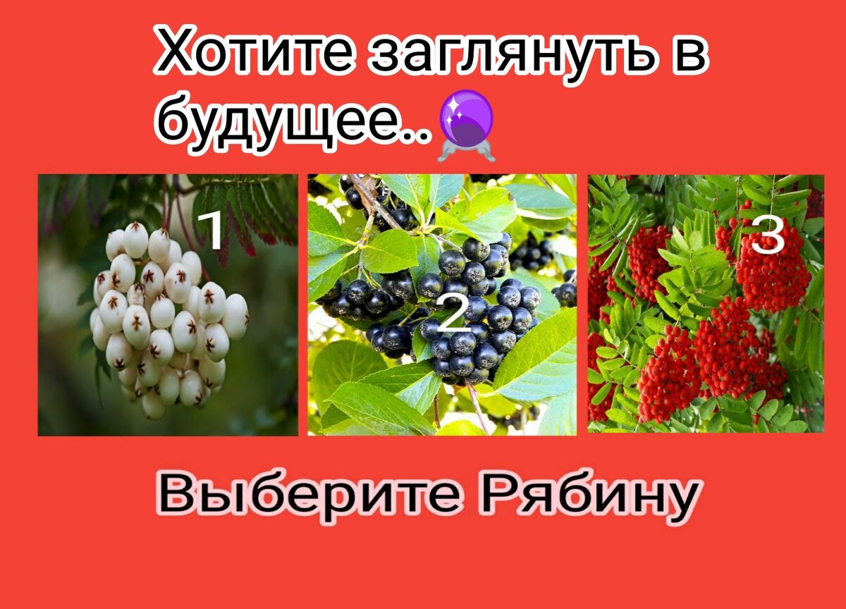 Многие любят тесты, чтобы что - то понять, развлечься или настроить себя на позитивный лад. Загляните в сад и выберите одну рябину. Выбрали? Прочитайте результат. Белая рябина ✅ 1 Независимость - ваше второе имя. Вы выбрали свой курс. Ваши артистические способности могут повлиять на ваш доход. Чтобы достичь успехов в работе, вам достаточно быть верным своим принципам и убеждениям . И к вам придет то, что вы так ждали. Черная рябина ✅ 2 Вы чувствительная натура . В мыслях о себе вы проводите много времени. В вашей жизни появится человек, с которым сложатся романтические отношения. Ваша жизнь станет интереснее и появится авантюризм. Красная рябина ✅ 3 Вас можно назвать уверенным человеком. У вас все под контролем. Вы никогда не полагаетесь на удачу, только на свои силы и ум. Вы ничего не откладываете на потом. Окружающие чувствуют вашу силу духа и идут вам навстречу. Вас ожидает продвижение по карьерной лестнице или смена работы. Удачи вам! Подпишитесь на мой канал!