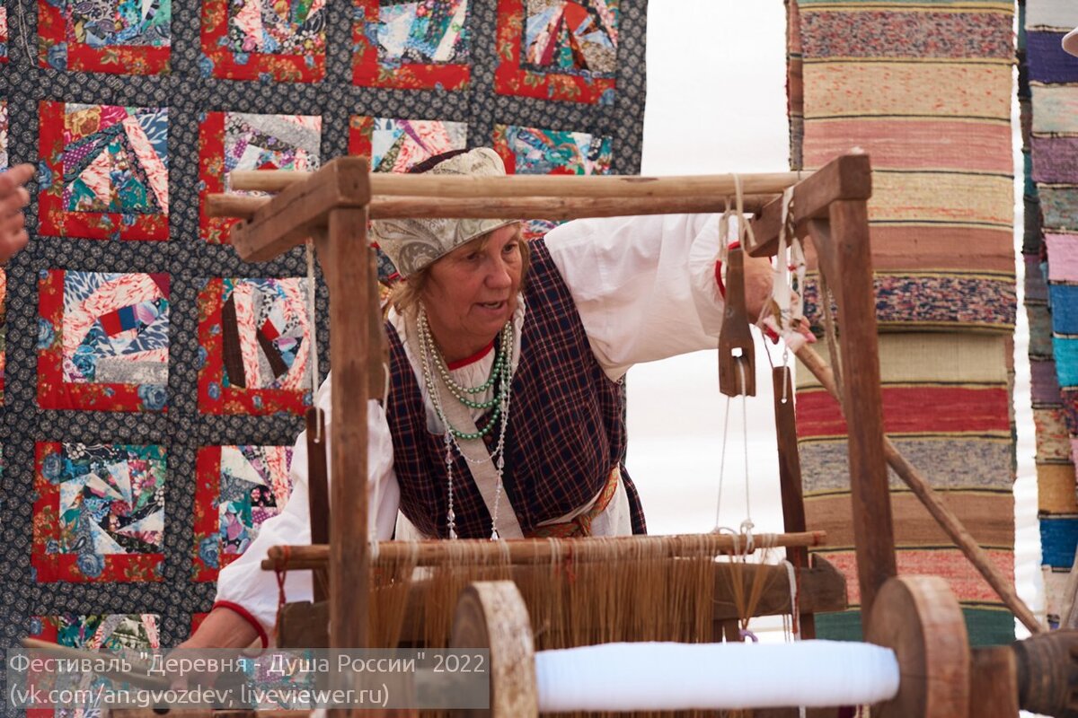 Фестиваль «Деревня — Душа России» проходит каждый год (до пандемии каждый год) и на него приезжает очень много народу в таких вот костюмах из аутентичных тканей, подобранных с любовью и вышитых ручным трудом.