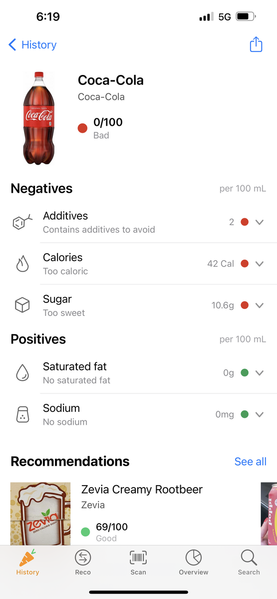 О пользе Amazon, Uber, Citizen, Credit Karma, Rakuten и Zelle я уже рассказывала в этой статье. Сегодня - кое-что новенькое. Yuka Это бесплатное мобильное приложение, которое позволяет сканировать штрих-коды продуктов питания и средств личной гигиены и мгновенно видеть их влияние на здоровье. Достаточно просто открыть приложение и отсканировать штрих-код продукта. Как думаете, какую оценку по 100-балльной шкале это приложение поставило кока-коле? Правильно! 0! И надпись “Bad”, что в данном случае значит “лучше не брать”. И на этой же странице приложения появляется рекомендация, чем можно заменить продукт, - квас с рейтингом 69 из 100 и пометкой “Good”. Другой пример - соус для домашней пиццы - 72 из 100. Думаю, неплохо. Кстати, еще один полезный момент - приложение показывает количество сахара, протеина, калорий и пр. Благодаря этому приложению я узнала, что сметана собственной торговой марки Walmart более полезна, чем та, которая продается в любом супермаркете: 38 против 75 баллов