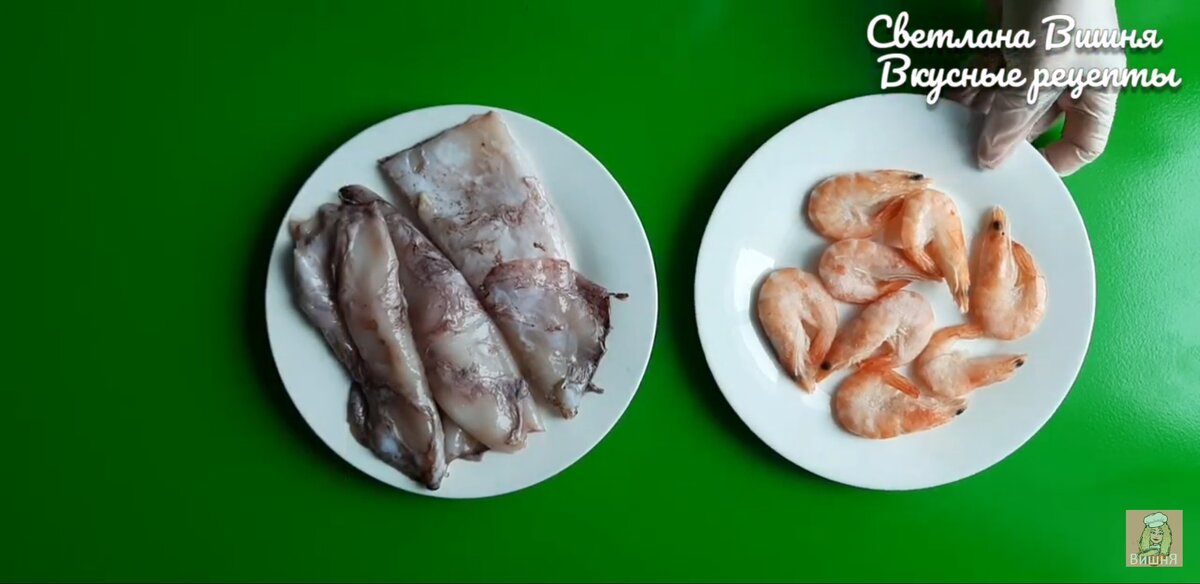 Для меня этот способ варки кальмаров и креветок самый лучший. Кальмары получаются не резиновыми, а очень нежными, к тому же ароматными, потому что готовятся в бульоне. И креветки при таком способе приготовления сохраняют нежность, вкус и сочность. - 2 литра воды - столовая ложка соли - чайная ложка сахара - сушёный укроп ( чайная ложка) - пара лавровых листьев - столовая ложка сока лимона Довожу бульон до кипения на сильном огне. ✅ Креветки всегда отвариваю неочищенными в панцире. Панцирь сохраняет мясо нежным, предотвращает потерю влаги, придаёт вкус и аромат. ✅ Креветки лучше всего охладить сразу в ледяной воде. С такими кальмарами и креветками салаты получаются особенно вкусными. Больше спасибо, что заглянули в гости на мой канал. Жду вас снова 😊🤗 ✅ Подписывайтесь, на канале вы найдёте много разнообразных рецептов домашней кулинарии.