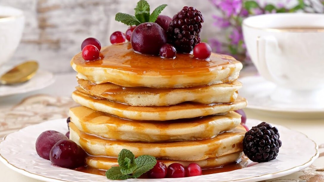Ванильные панкейки на кефире Ингредиенты: ·Кефир - 225 г ·Мука пшеничная - 150 г ·Яйца - 2 шт. ·Масло сливочное - 25 г ·Сахар - 30 г ·Ванильный сахар - 1 ч. ложка ·Разрыхлитель - 1,5 ч. ложки ·Сода - 1/4 ч. ложки ·Соль - щепотка Приготовление: 1.Кефир желательно брать покислее - он лучше среагирует с содой. 2.Сливочное масло растопите, оставьте остывать. Муку просейте в глубокую миску. Добавьте соду, разрыхлитель, соль, сахар и ванильный сахар. 3.Тщательно перемешайте. Сделайте в мучной смеси небольшую лунку. 4.В отдельной миске соедините кефир и яйца. 5.Тщательно перемешайте до однородности. 6.Влейте яично-кефирную массу в мучную смесь. Перемешайте. 7.Влейте растопленное сливочное масло. Тщательно перемешайте до однородности. 8.Готовое тесто для панкейков должно получиться довольно жидким, по консистенции похожим на сметану, и стекать с ложки толстой струйкой. 9.Такое тесто для панкейков лучше всего держать в холоде до самого момента попадания на раскалённую сковороду - такой перепад