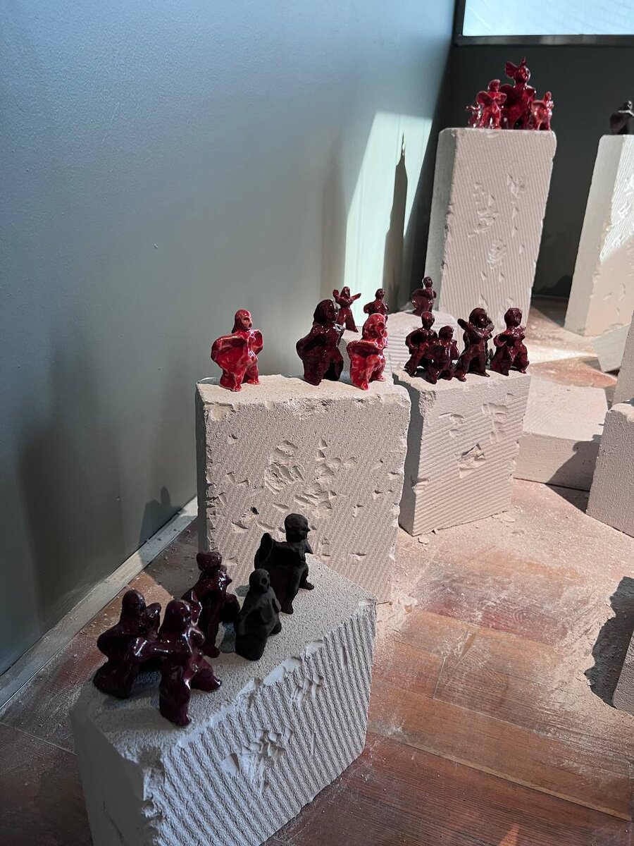 Не могу не поделиться впечатлениями о выставке Маяны Насыбулловой, которая проходит сейчас в Музее Вадима Сидура😍 Всего она занимает два помещения + сюрпрайз вне. 👣В первом комнате художница переосмысляет образ катастрофы с ее телесностью, изъянами человеческого тела и его бессилием. Маяна в том числе конечно обращается и к излюбленным мотивам самого Сидура - к его военному опыту, опыту насилия и травмы, но все это сквозь призму современных реалий. А потому центральной фигурой в помещении стал инвалид, окруженный скульптурной толпой разгневанных женщин, которые единовременно служат метафорой для всех угнетенных, переживших насилие и войну жен, солдатских матерей, вдов и дочерей😱Каждую детальку здесь хочется рассматривать, а потому в каждой из комнат ты ползаешь очень долго… 👣Во второй же комнате можно увидеть настенную роспись = реконструированный рисунок, обнаруженный Маяной в узбекской Бухаре, в цыганском кишлаке. По рассказам местных жителей, бежавший заключенный, которого они