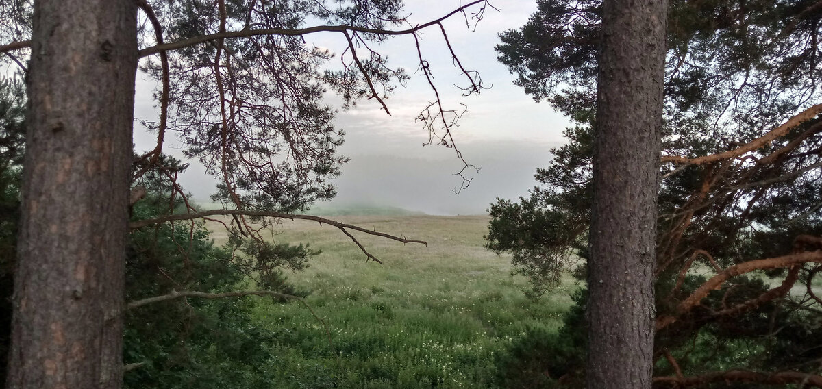 Утро было тяжелым. Ночью температура упала до +12. Спальник совершенно не справлялся. Плюс звуки других отдыхающих, которые полночи колесили в поисках места (которое я видимо занял). В общем - подъем был очень ранний. С трудом покурил - судороги от холода. Пришлось сделать зарядку, поприседать, помахать руками и ногами. В общем - разогнать кровь. Чуть-чуть помогло. Ползущий туман намекал, что утро будет прохладным и - мокрым. И задерживаться на месте - плохая мысль. Сбор. Выезд. Цель - выйти на Осташков, что на озере Селигер. Сложности...есть. Тут видимо у построителя трека были проблемы с сведением двух разнесенных районов, так что в одном месте предстояло "напрямую" срезать кусок пути. так что до Никольского - еду по нормальной дороге, разве что отвлекаясь на интересные объекты. А вот дальше.... по автомобильной заросшей колее по полю. Через брод. И опять по полю. Колея заросла настолько, что ехать - в принципе невозможно. Только тащить, продираясь через траву. Резко пожалел, что не