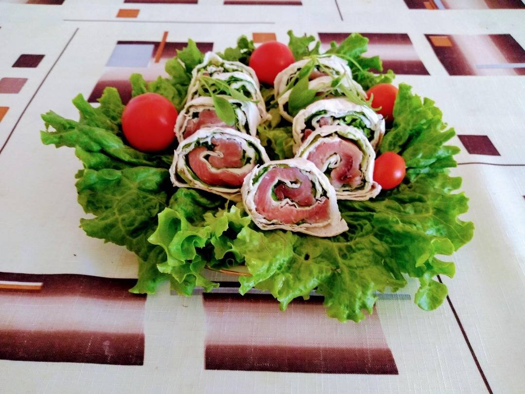 #четверг Прекрасная альтернатива бутербродам с красной рыбой - рулетики из лаваша с горбушей, творожным сыром и зеленью. Готовится такая закуска предельно просто, а получается очень вкусно и красиво.Такое блюдо порадует гостей своим ярким видом и отличным вкусом. Ингредиенты: тонкий по структуре Лаваш армянский, Сыр творожный, малосольная горбуша, салат латук Способ приготовления: Подготавливаем необходимые ингредиенты. Горбушу готовим по связанному рецепту. Лаваш режем пополам. Листья салата промываем под проточной водой, обсушиваем.. Лаваш смазываем творожным сыром, поверх него выкладываем листья салата. Рыбу нарезаем тонкими пластинками, выкладываем, равномерно распределяя по поверхности лаваша.. Плотно скручиваем лаваш рулетом, заворачиваем в пищевую пленку. Поместить на 35-40 минут в холодильник, этого времени как раз достаточно, чтобы блюдо максимально пропиталось, и было сочнее. Готовую закуску режем на кусочки, украшаем остатками зелени и подаем на стол. Приятного аппетита!