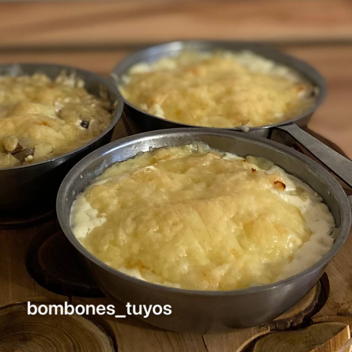 3. Разложить курицу с грибами по кокотницам или в одну форму побольше, залить сливками. Сверху посыпать тёртым сыром.