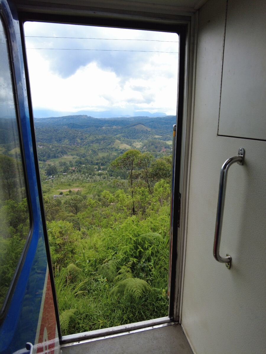 В ланкийский поездах двери не закрываются и вы можете спокойно сидеть на подножке, фотографироваться, торчать половиной тела на улицу и любоваться окружающей красотой. Ещё в горах, среди чайных плантаций меня поразил запах. Там пахнет то ли смесью чая и цветов, то ли чем то ещё, но всю дорогу нас окружал невероятный аромат. Поезд едет медленно, периодически притормаживает, чтобы все успели насмотрелся по сторонам.
