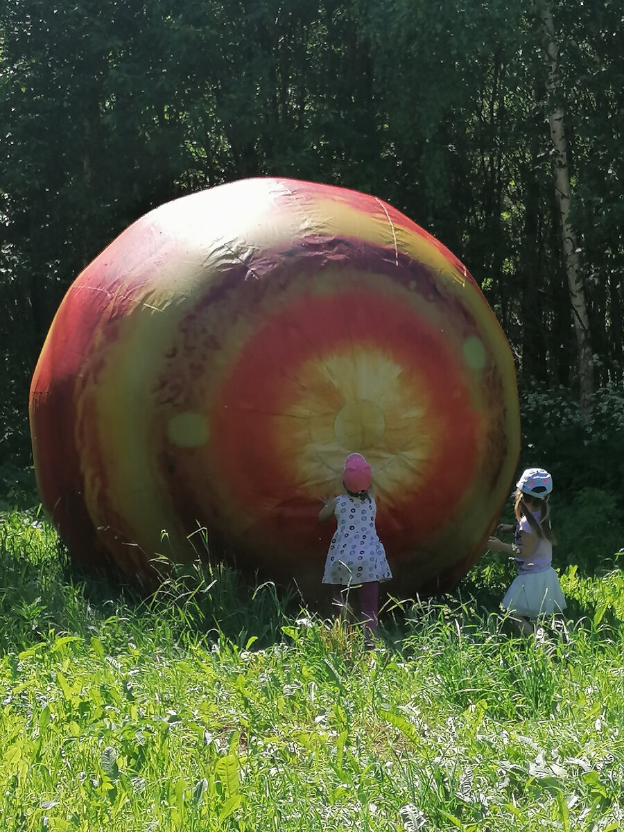 Что ещё. Маршруты. С Министром глупых идей. Дальние и короткие. По территории арт-парка специально положены дорожки, по ним и ходить. Дорожка-батут, на которой с удовольствием скакали не только дети, но и взрослые. Огромные шары-планеты, которые можно катать по лесам и полям. Сенсорная стена. Музыкальный павильон, где можно было поиграть на разных музыкальных инструментах, а потом принять участие в концерте. Павильон с настольным играми. Ярмарка, на которой дети продавали свои работы (картины, поделки). И, конечно, всевозможные арт-объекты, которые остались в наследство от прежних фестивалей. Короче, ходить - не переходить.
