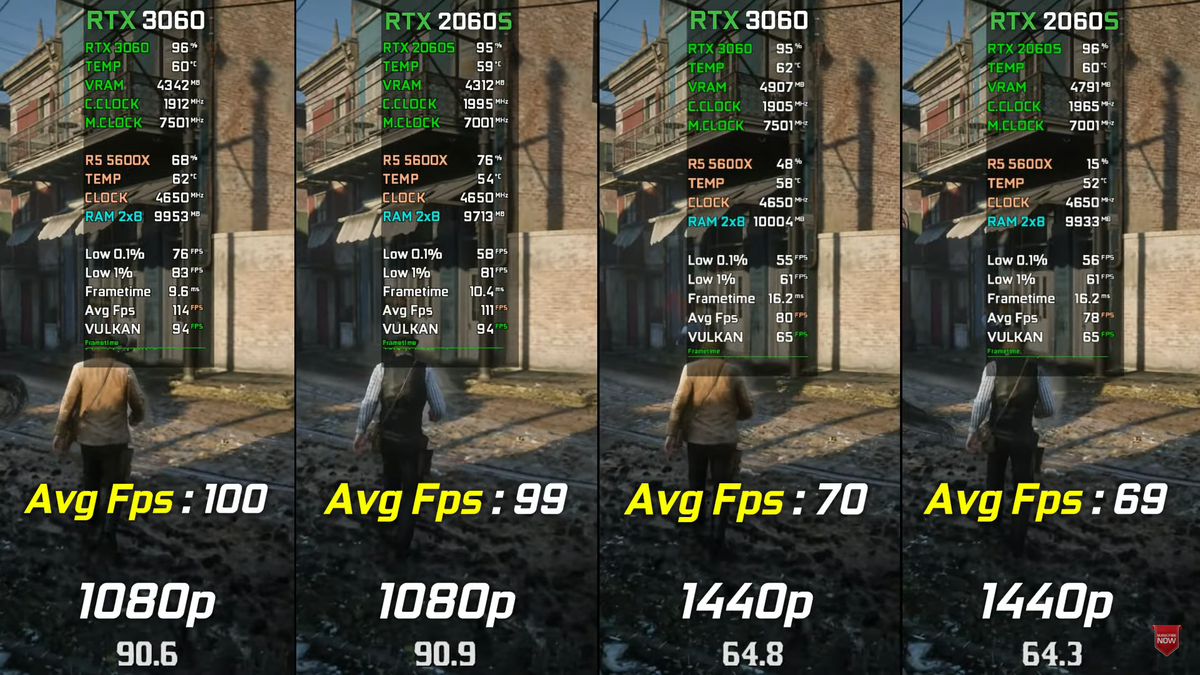 Моё сравнение стоит начать с показателя FPS этого монстра в RDR 2. Эта игра умеет по-настоящему нагрузить нашу систему, поэтому будет достаточно понятно, что вообще может данная видюха.