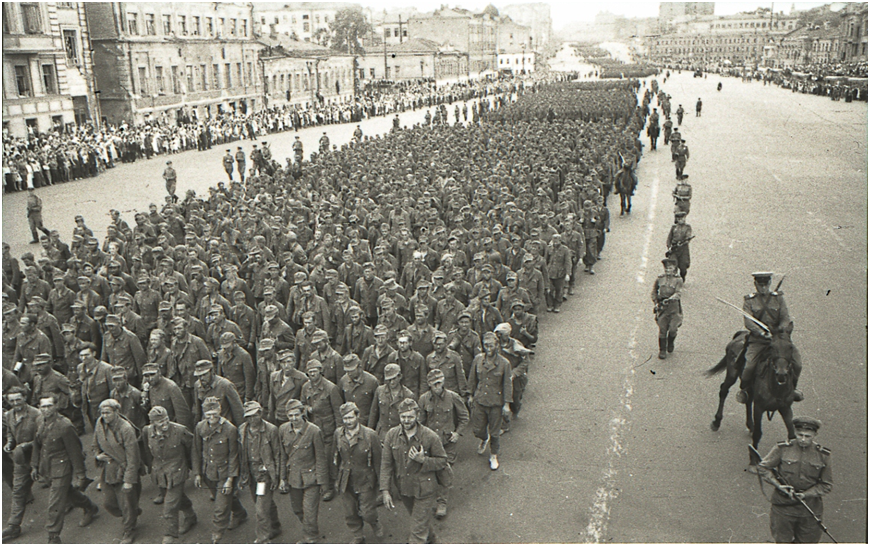 И в конце – о современном немецком восприятии «парада побежденных». Например, в Die Welt написали: «Советский диктатор Сталин показал миру результаты своего белорусского блицкрига. Около 55 тысяч измученных пленных немецких солдат прошли по улицам Москвы. Их сопровождали красноармейцы со штыками и конные казаки. Были попытки нападения на пленных, которые предотвратили конвоиры».