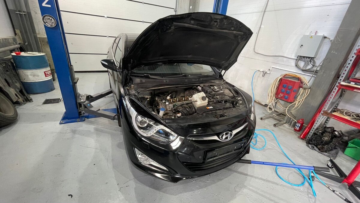 Выполняем замену элементов ГРМ (газораспределительного механизма) для двигателя 2.0 G4NA на автомобиле Hyundai i40. Для замены нам понадобится: Снимаем переднюю крышку, очищаем и обезжириваем место нанесения герметика на ней и блоке Выставляем цепь по меткам и собираем детали мотора на новый герметик Работы 15000, Времени около 4 часов.