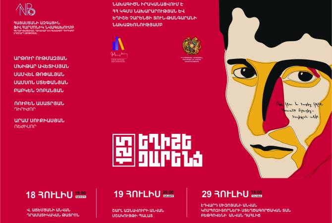 В рамках мероприятия, посвященного 125-летию со дня рождения Егише Чаренца, известные и неизвестные произведения поэта прочитают известные и популярные артисты, представив творческую личность, человека, патриота, влюбленного, семью, попавшего в тюрьму, трагичного и в то же время ставшего символом борьбы Чаренца. Также будет показана редкая хроника жизни и эпохи поэта.