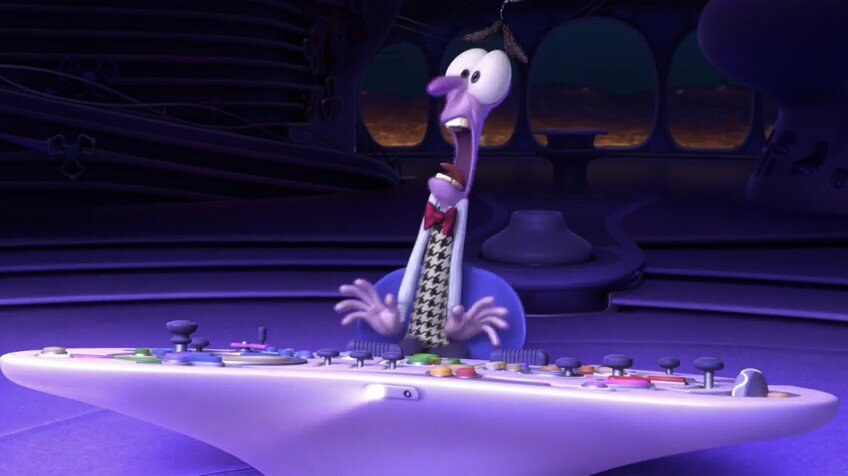 Очень часто слышала раньше, что фиолетовый - это цвет депрессии. Но я не согласна. Депрессия бесцветна. Ну или монохромна. Черно-белая. Даже серая. В депрессии нет яркости. Сочности. Там темно, сыро и зябко. Почти как в Питере 350 дней в году. Но только хуже. Фиолетовый же цвет слишком импульсивен для этого. А вот для страха - самое то. С одной стороны - качества синей Печали. Боюсь всего, страдаю, плачу. С другой стороны - красного Гнева. Настолько сильные чувства, что иногда просто падаю в обморок. Но. Страх в нашем теле незряшный персонаж. Как и в мультфильме. Да, нам нынче не нужно спасаться от саблезубых тигров. Всё чаще наши реакции относятся к грубым начальникам, плохой погоде и ситуации в мире. Но в любой ситуации нужно доверять своему телу. Если вы пришли на работу, а вас просто колотит от стресса (да и страха тоже), бегите. По своему опыту говорю - оно того не стоит. Ну а «Головоломка» - это отличная история. О взрослении. Принятии. И жизни. Не только детей,