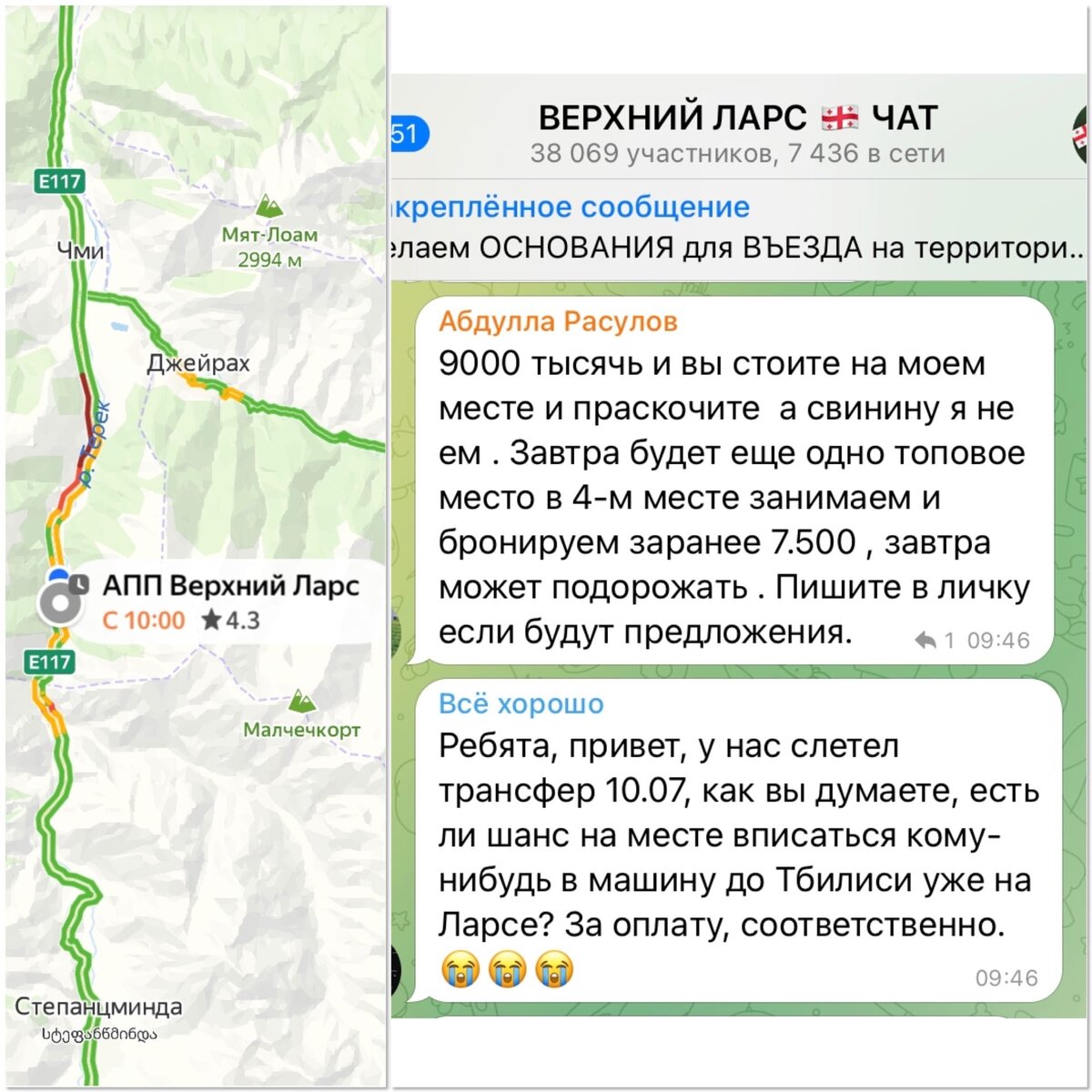 С 1 июня открыли сухопутную границу между Россией и Грузией для свободного перемещения(ранее можно было пересекать границу только с целью обучения, работы, лечения или по другой веской причине). Более того, Грузия сняла все ковидные ограничения для туристов. Ну как и следовало ожидать, многие граждане нашей страны решили провести отпуск именно в Грузии. Огромный туристический поток из России привёл к коллапсу на пропускном пункте Верхний Ларс. Перед КПП собираются суточные пробки, а чтобы понимать, какие проблемы это влечёт, достаточно пролистать чат в телеграмме, посвященный прохождению КПП Верхний Ларс. Да, вы правильно поняли, некоторые продают свои места в очереди, чтобы желающие могли быстрее проехать границу. Другие вынуждены провести в пробке около суток. Вот описание реальной истории о прохождении границы, которое я нашел в этом чате. «Хотел рассказать про свой опыт прохождения границы Россия - Грузия. В итоге все заняло порядка 24 часов. Встали в пробку в 3 ночи 6 июля и выех