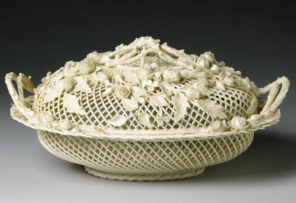 Эта прекрасная фарфоровая корзина создана на фабрике Belleek Pottery, история которой началась в 1849 году в деревне Беллик в графстве Фермана на территории Северной Ирландии, когда Джон Колдуэлл Блумфилд унаследовал поместье своего отца Castlecaldwell. Стремясь обеспечить работой своих арендаторов, пострадавших от Великого голода, он заказал геологическую съемку своей земли. Обследование показал, что примерно в восьми милях от Беллика в Ларкхилле было достаточно залежей полевого шпата и каолина (китайская глина), чтобы сделать добычу коммерчески жизнеспособной.