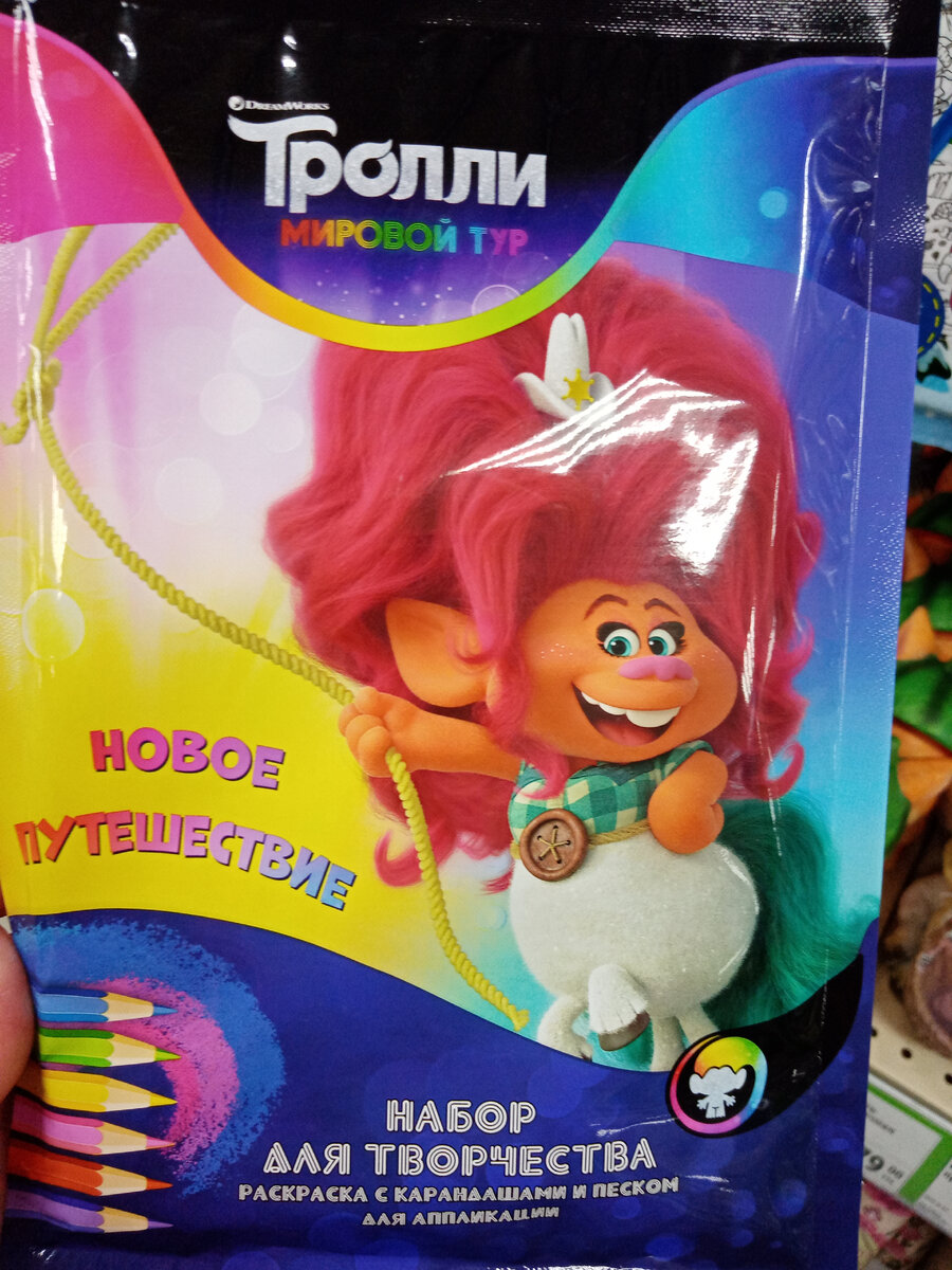 Добрый летний день мои хорошие. Жара конечно стоит мощная. Особо делать ничего не хочется. Дома и в машине хотя бы кондиционер спасает, а на улице невыносимо находиться, хотя и очень хочется погулять. Сегодня с утра, пока еще воздух не накалился побежала за продуктами, а заодно решила и в Фикс Прайс зайти. Что то я последнее время редко его посещаю. Вообщем читайте мой новый обзор. Вот такой набор для творчества привлек мое внимание. В нем раскраска с карандашами и песок для аппликации. Очень интересно было бы узнать, как применяется песок, но к моему сожалению инструкция была внутри упаковки. Повертела я ее, повертела и поставила на место. Сам товар мне понравился. Можно собрать целую коллекцию троллей. Они яркие и милые, по крайней мере на картинке. Такое кашпо я покупала года два назад в магазине Светофор. Только там было трио. Оно удобно только для маленьких растений, а так, как мои цветочки за два года подросли, то я его отдала подруге. Она как раз занимается разведением цветов и