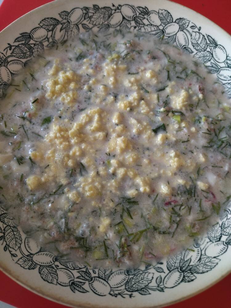 Из множества окрошек, представленных мною здесь на суд или радость почтенного собрания, эта - самая адаптированная под зной. Она же - отличная закуска. Густая составляющая, кроме того, - это лёгкий салат. #рецептдня #кукпадготовит Ингредиенты: Кислый белый квас, перепелиных яиц, сельдерея с зеленью, небольшой огурец, крупные редиски, зелёного лука, укропа, густой сметаны, горчицы, хрена, соли, чеснока, чёрного или бородинского хлеба Способ приготовления: Огурец почистить, нарезать мелкими кубиками. Той же формой нарезать стебель сельдерея, а его зелень - мелко. Редиску потереть мелкой тёркой. Мелко порезать укроп и белки яиц. Желтки раскрошить. Нарезанный зелёный лук растереть в пасту вместе с солью, чесноком, горчицей и хреном. Туда же раскрошить корочки хлеба и снова хорошо перетереть. Соединить в миске всё кроме желтков, добавить сметану, хорошо перемешать. Эту гущу разложить по тарелкам, заправить квасом до желаемой густоты. Подавать, посыпав желтками.