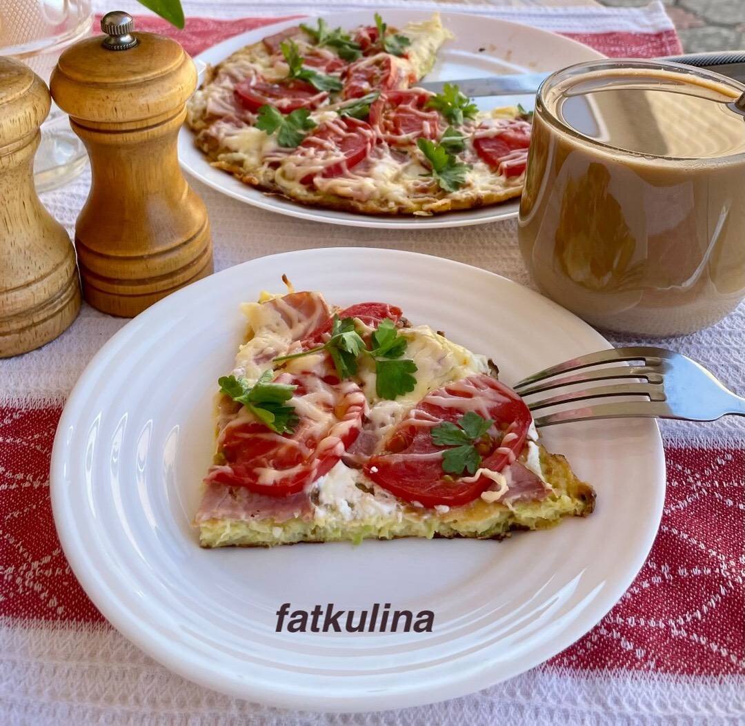 #среда #готовимвместе Быстро, вкусно и полезно на завтрак, обед или ужин пицца из кабачка, начинка может быть любой на ваш вкус. Готовьте с удовольствием! Ингредиенты: кабачок, яйцо, мука, томат, сметана, Ветчина, Сыр, Соль Способ приготовления: Кабачок берите маленький или половину среднего, натереть на крупной тёрке, добавьте соль по вкусу, яйцо. Перемешать. Всыпаем муку любую, у меня кукурузная. Еще раз все перемешать. Массу выкладываем на сковороду смазанную маслом и распределяем по всей поверхности. Накрыть крышкой, готовим 2-3 минуты. Переворачиваем, смазываем сметаной. Выкладываем ветчину, томат нарезанный слайсами, сверху присыпать сыром. Накрыть крышкой и готовим еще 3-4 минуты. Приятного аппетита!