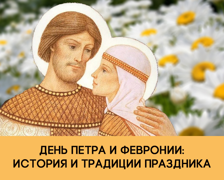 «Повесть о Петре и Февронии Муромских», написанная в в XVI веке, гласит об истории жития князя Петра и простой девушки Февронии. Однажды князь Петр Муромский сильно заболел, никто не мог его вылечить. Жила в рязанской деревне Ласково крестьянская девушка Феврония, изучавшая растения и травы и обладавшая даром целительства. Девушка удивительной красоты и доброты пришлась по сердцу юному князю, и он дал слово после выздоровления пойти с ней под венец, не побоявшись неравного брака. Жили они до конца своих дней долго и счастливо, справедливо,честно и преданно. Состарившись, приняли монашество под именами Евфросиния и Давид. Поселившись в разных монастырях, вели переписку друг с другом. Умерли в один день 8 июля (по новому стилю) 1228 года.
