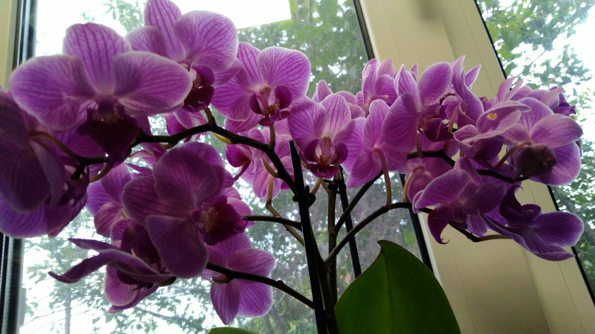 С орхидеями я уже сама не очень понимаю, они стараются, но процесс идет медленно или все таки все еще не могут понять как жить в нашем доме, как жить в климате нашего дома. У меня их было три, с которыми мы пытается подружиться. И еще дочка на днях мне подарила еще одну красавицу. Начну с самого приятно - о новой орхидейке. Она не малышка, но и не большая. Средненькая красавица, такая у меня есть, цветы более яркие у нее, чем у новой.В данный момент два цветоноса и обалденные корни. Правда еще не вынимала из родного горшка, На вид корни хорошие. Обработала землю перекисью (чайная ложка на литр воды). Очень хочется с ней тоже подружиться. Ну и про старожилов. Орхидея - сестричка новенькой, на мой взгляд, хоть и долго, все же растет. Но беспокоит, что корни через горшок не видно. Они не растут или из просто не видно... Хотя новый лист появился, вырос уже немного. Листья тоже хорошие. Растет растение не на подоконнике, а на полке рядом с окном. Полностью подкапывать грунт тоже нет смысла