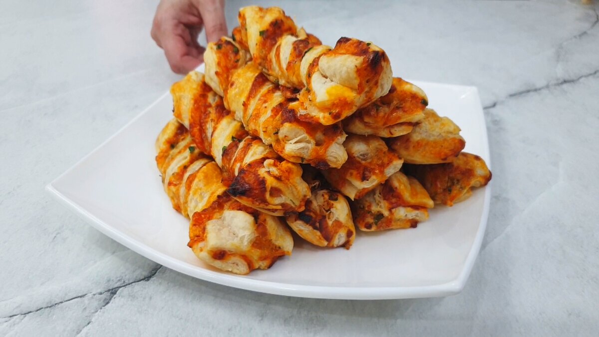 У меня всегда есть в запасе упаковка готового слоеного теста: достаю из морозилки и готовлю быстрый перекус