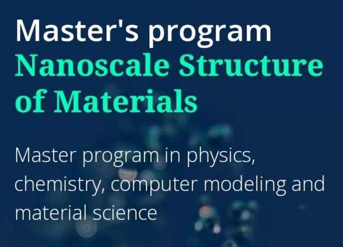 Physical methods: - Methods for materials characterization - Condensed matter physics - Mega-scale research facilities Methods of synthesis: - Methods for Nanomaterials Design - Synthesis of Nanostructured Materials Computer science: - Modern supercomuter technologies and data analysis - Computer modelling of nanoscale structure of materials Internships: - Project activity - Research work - Industrial internship - Language internship