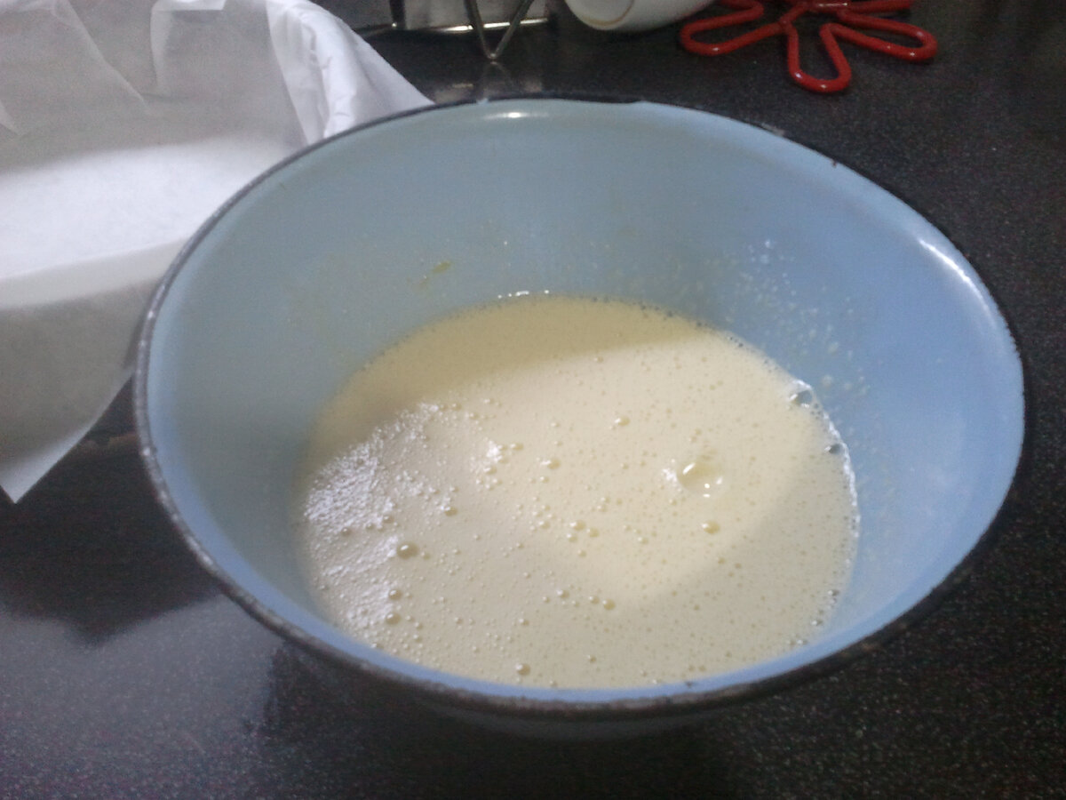 Всыпать (через сито) муку с разрыхлителем. Тесто получается жидким, но не слишком.